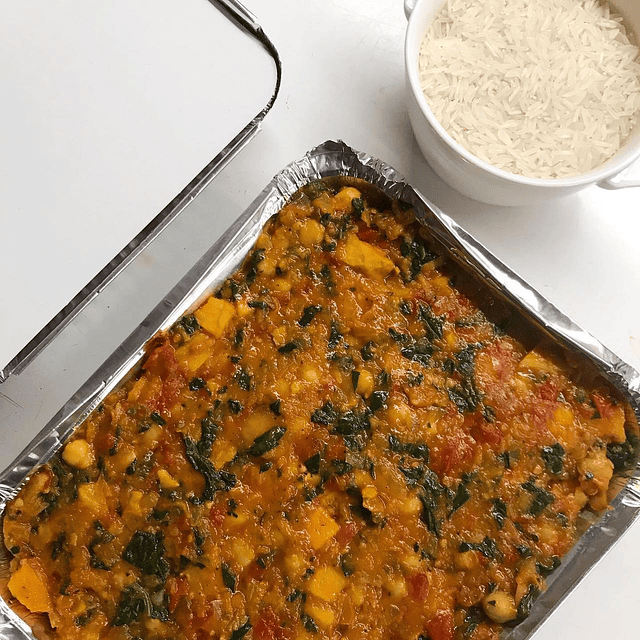 Una deliciosidad inimaginable, que tiene camotes, garbanzo, espinacas, leche de coco y un montón de cositas más para terminar de aliñar el banquete.